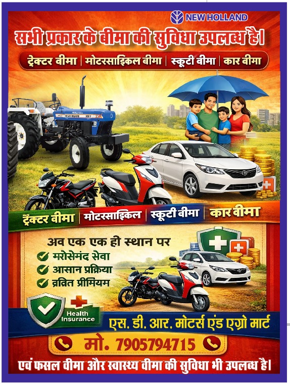 SDR MOTORS AND AGRO MART की सबसे बड़ी विशेषता यह है कि सभी उत्पादों की पूरी जानकारी आपको केवल एक फोन कॉल पर उपलब्ध कराई जाती है। यहां सरल प्रक्रिया, ईमानदार सलाह और ग्राहक संतुष्टि को सर्वोच्च प्राथमिकता दी जाती है। हमारी टीम आपको आपकी आवश्यकता और बजट के अनुसार सही बीमा और निवेश विकल्प चुनने में पूरी सहायता प्रदान करती है।