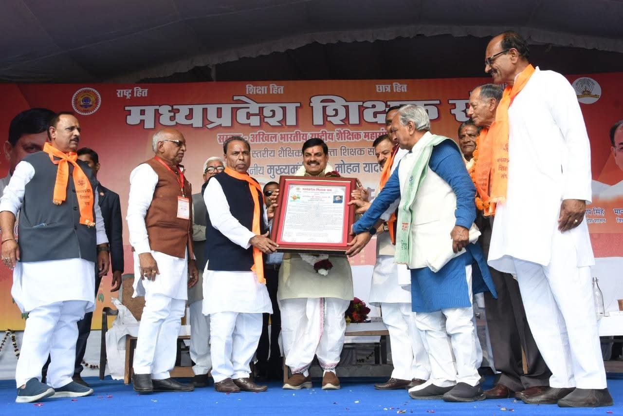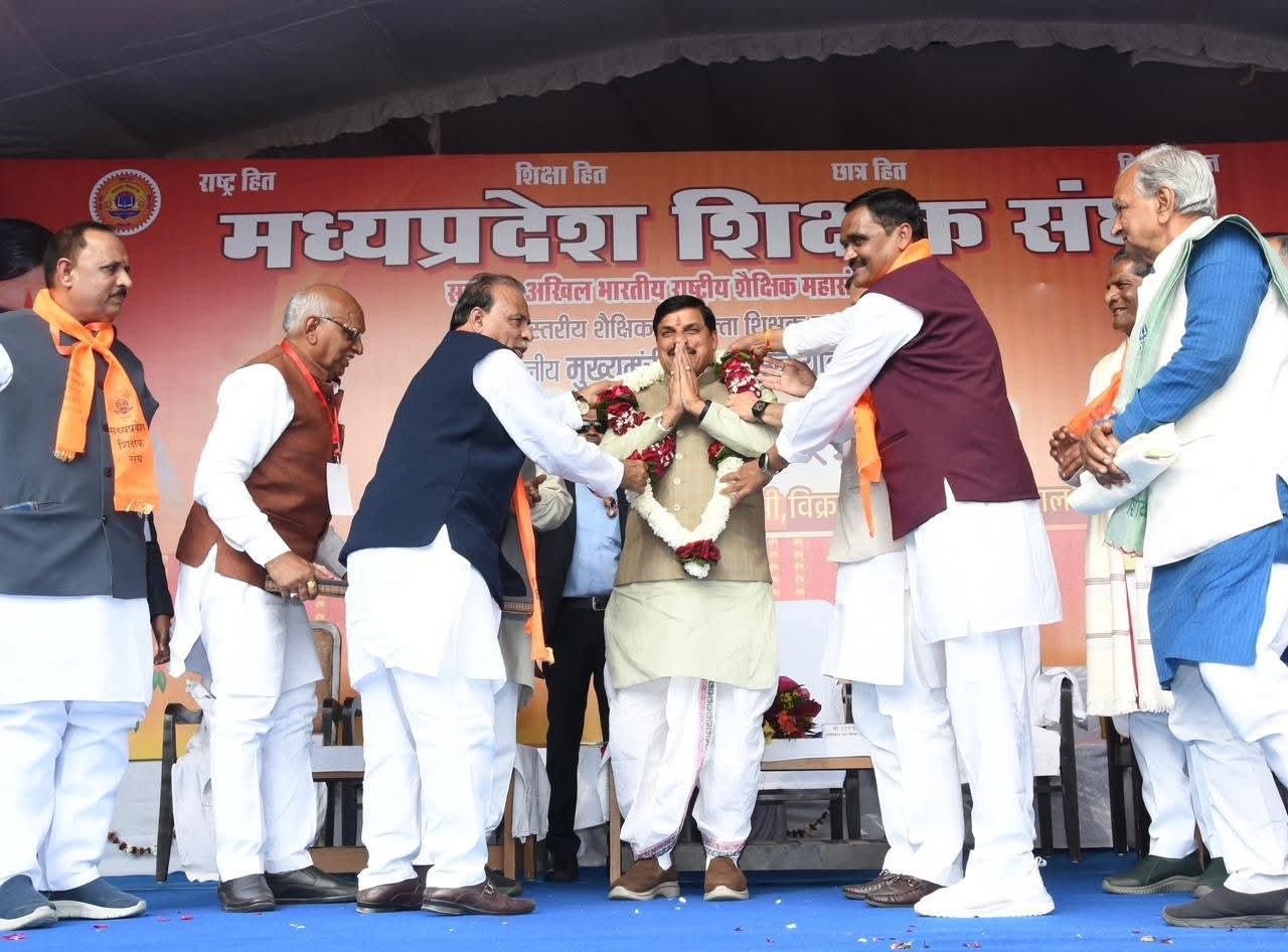 मुख्यमंत्री डॉ. मोहन यादव ने आज भोपाल स्थित सुभाष उत्कृष्ट विद्यालय में मध्यप्रदेश शिक्षक संघ द्वारा आयोजित "अभिनंदन समारोह" में सहभागिता कर शिक्षा के क्षेत्र में उत्कृष्ट योगदान देने वाले शिक्षकों को सम्मानित किया।