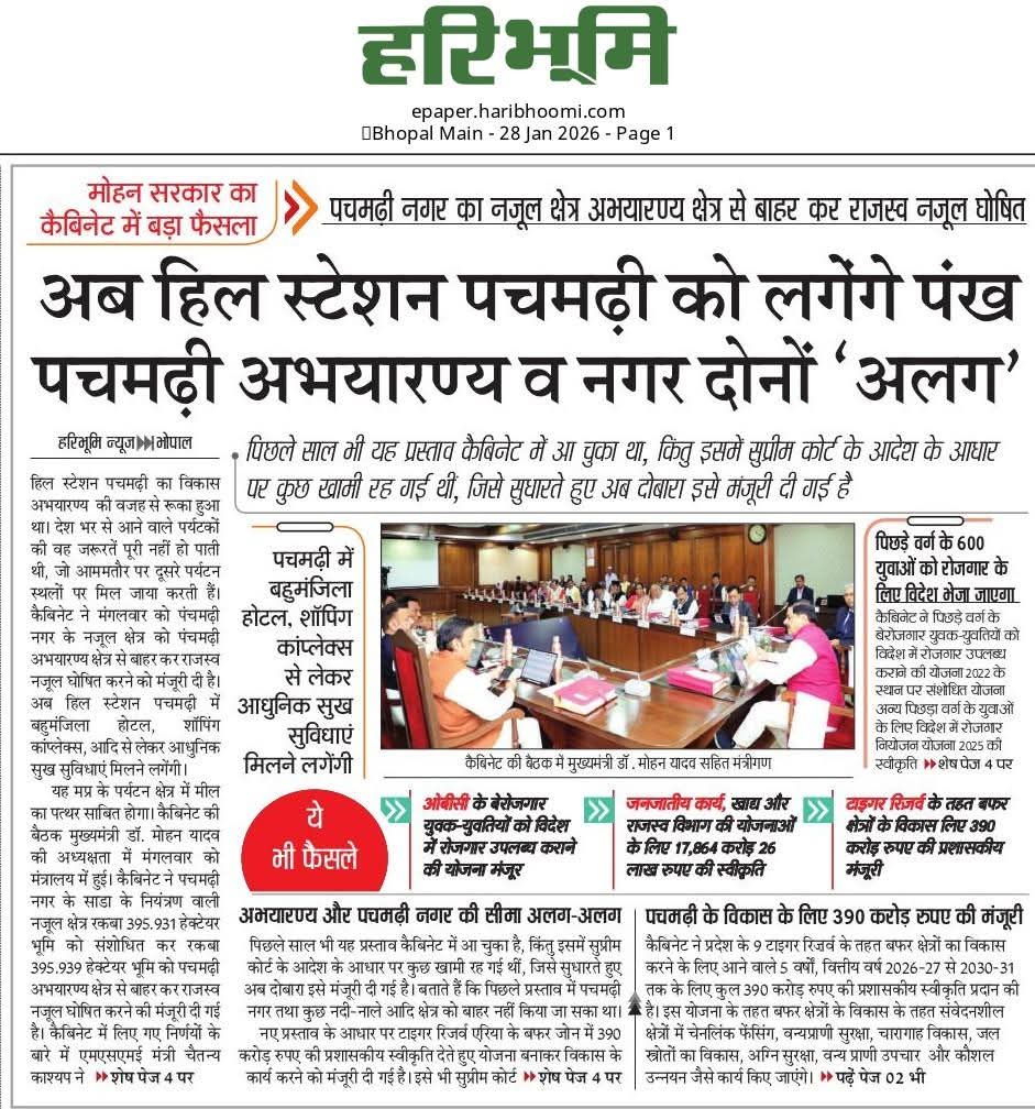 मुख्यमंत्री डॉ. मोहन यादव की अध्यक्षता में कैबिनेट की बैठक में महत्वपूर्ण निर्णय ⏩अब हिल स्टेशन पचमढ़ी को लगेंगे पंख Dr Mohan Yadav CM Madhya Pradesh #JansamparkMP