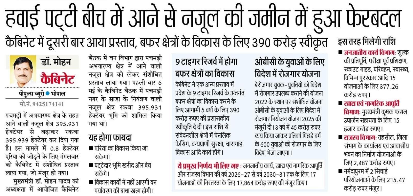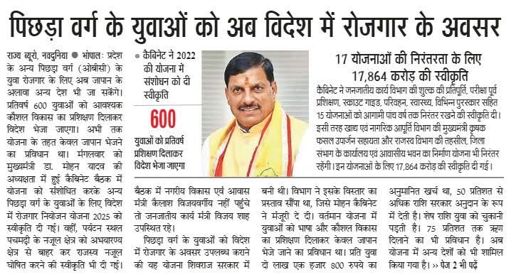 मुख्यमंत्री डॉ मोहन यादव की अध्यक्षता में कैबिनेट की बैठक में महत्वपूर्ण निर्णय