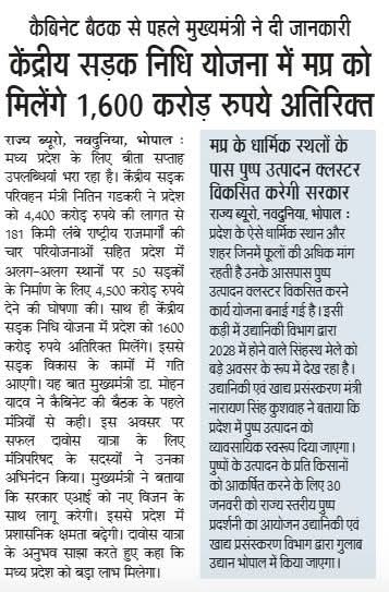 मध्यप्रदेश को मिलेंगे ₹1600 करोड़ अतिरिक्त