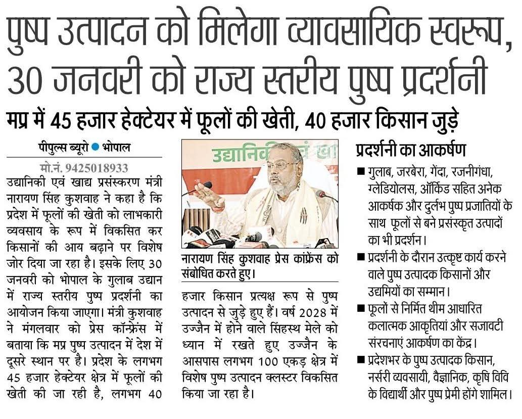 राज्य स्तरीय पुष्प प्रदर्शनी 30 जनवरी को Dr Mohan YadavDepartment of Horticulture, Madhya Pradesh#JansamparkMP