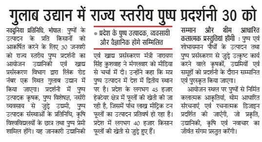 राज्य स्तरीय पुष्प प्रदर्शनी 30 जनवरी को