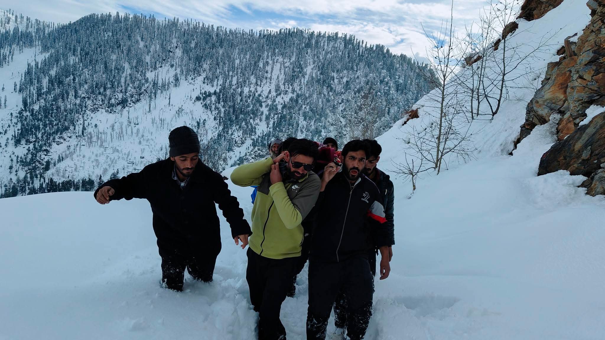No Ambulance, No Road: Deceased Woman Carried on Shoulders Across Snowbound Pogal.For 35 KM In 28 inches of snow