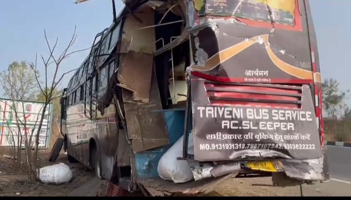 टक्कर इतनी जबरदस्त थी कि बस का पिछला हिस्सा पूरी तरह क्षतिग्रस्त हो गया।