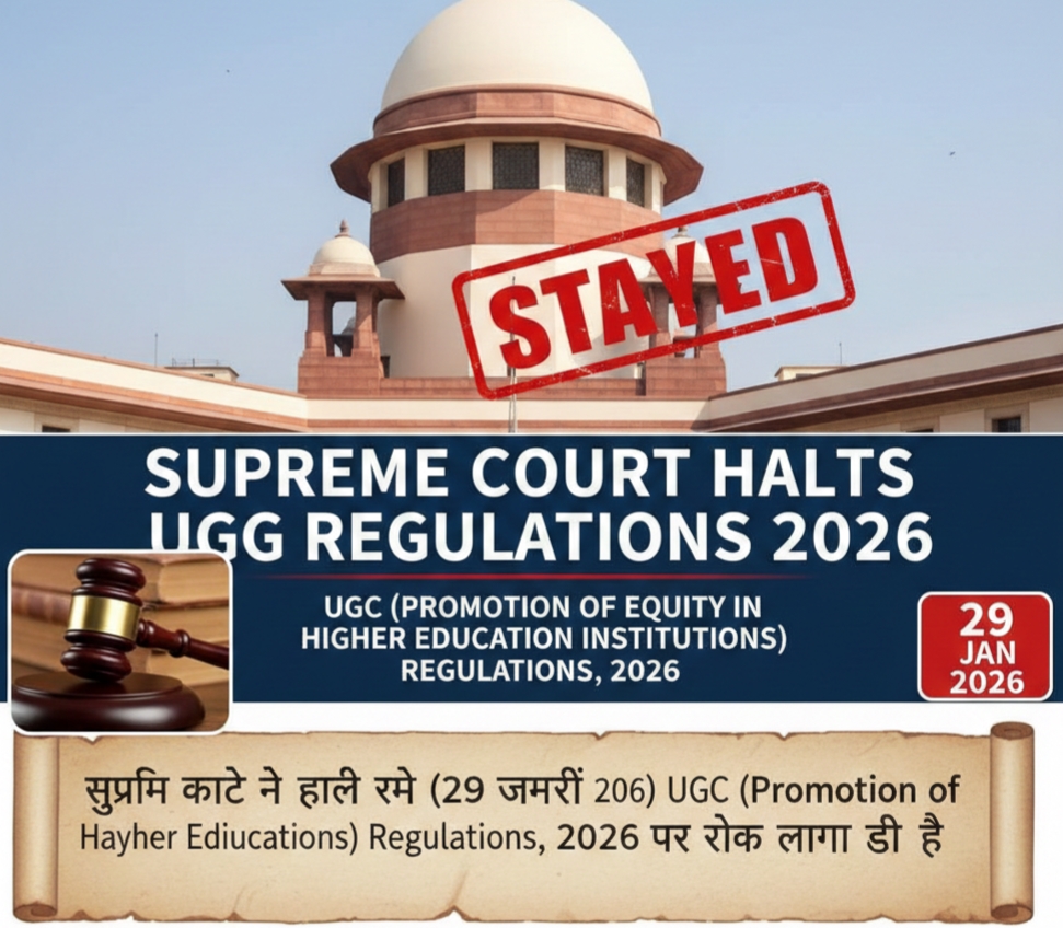 सुप्रीम कोर्ट ने हाल ही में (29 जनवरी 2026) UGC (Promotion of Equity in Higher Education Institutions) Regulations, 2026 पर रोक लगा दी है।