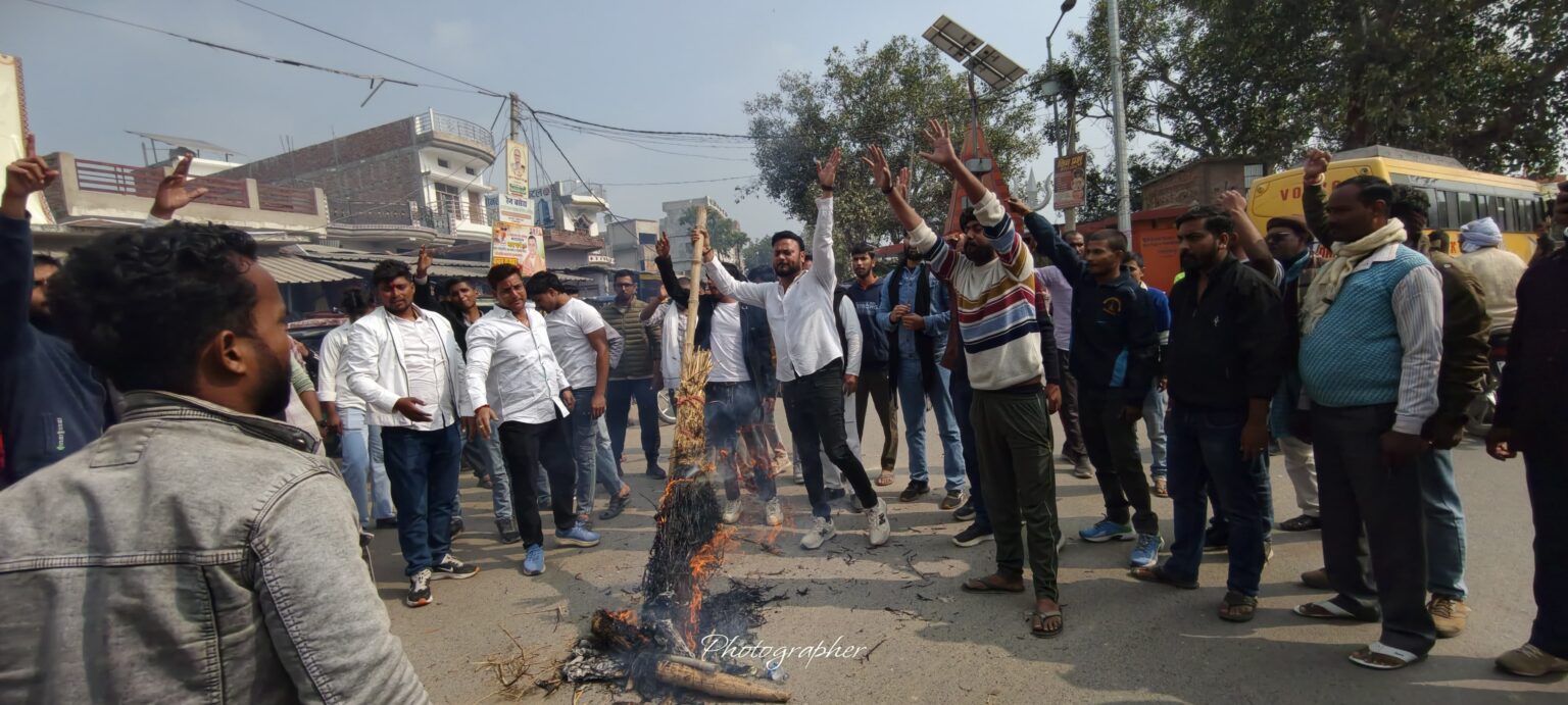 बलिया। यूजीसी के नए नियमों के विरोध में गुरुवार को मनियर में सवर्ण वर्ग के युवाओं ने जोरदार प्रदर्शन किया। बड़ी संख्या में युवाओं ने सड़क पर उतरकर मनियर बस स्टैंड पर केंद्रीय शिक्षा मंत्री धर्मेंद्र प्रधान एवं कानून मंत्री अर्जुन राम मेघवाल का पुतला दहन कर अपना आक्रोश जताया।