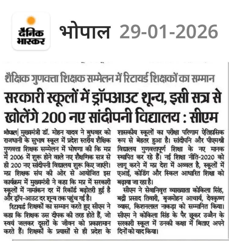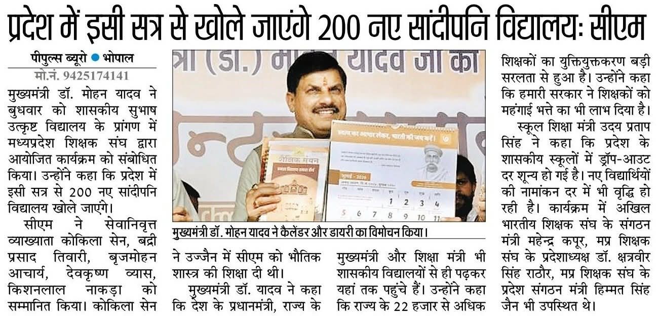 मध्यप्रदेश में इसी सत्र से खोले जाएंगे 200 नए सांदीपनि विद्यालय: मुख्यमंत्री डॉ मोहन यादव