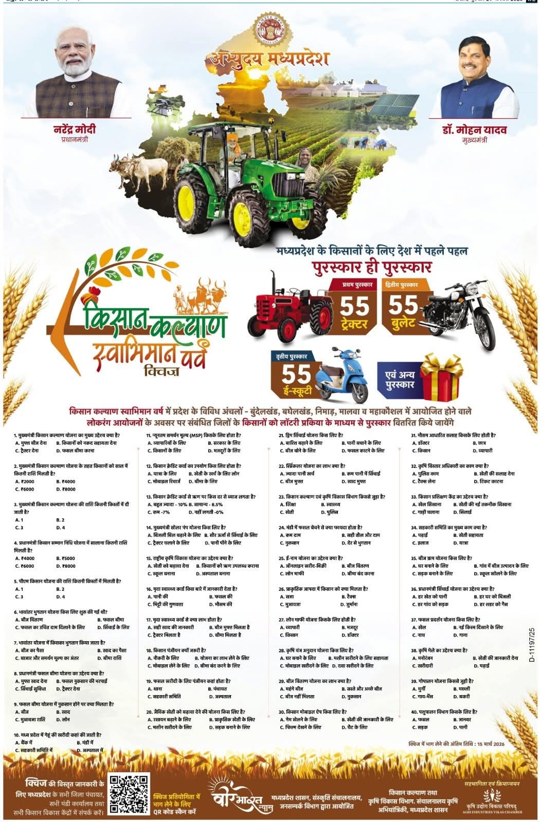 🌾 आकर्षक पुरस्कारों से सम्मानित होंगे मध्यप्रदेश के अन्नदाता