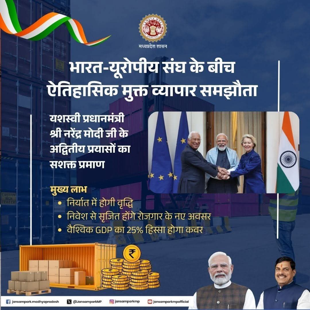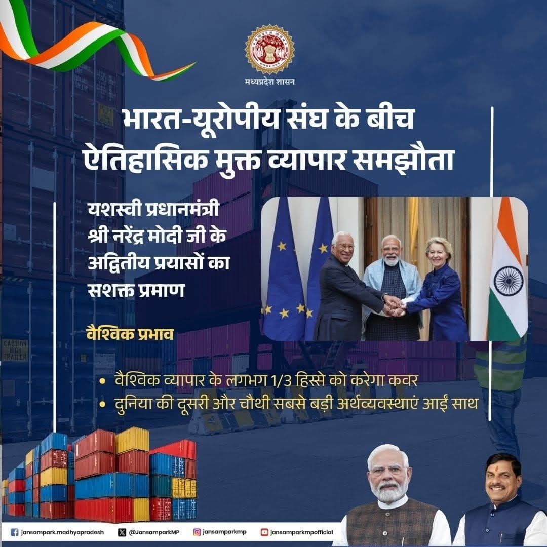 भारत-यूरोपीय संघ के बीच ऐतिहासिक मुक्त व्यापार समझौता