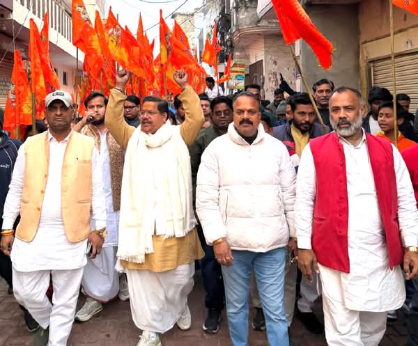 मेरठ। आगामी 1 फरवरी को सरधना रोड पर स्थित सरस्वती शिशु मंदिर स्कूल में आयोजित विराट हिंदू सम्मेलन के निमित्त एक विशाल जन जागरण पदयात्रा कंकरखेडा पैठ बाजार स्थित मंदिर महादेव से निकाली गई।