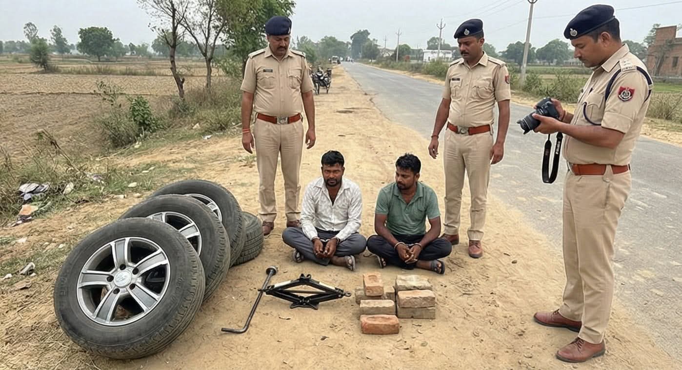 रुदौली पुलिस की बड़ी सफलता: चोरी की थार कार के चार पहियों समेत दो शातिर चोर गिरफ्तार