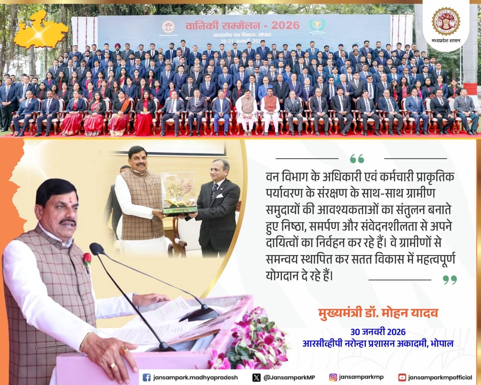 मुख्यमंत्री डॉ मोहन यादव आरसीव्हीपी नरोन्हा प्रशासन अकादमी भोपाल