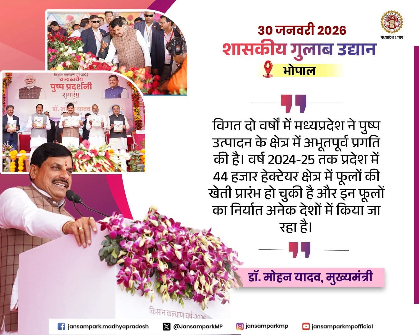 विगत 2 वर्षो में मध्यप्रदेश ने पुष्प उत्पादन के क्षेत्र में अभूतपूर्व प्रगति की है