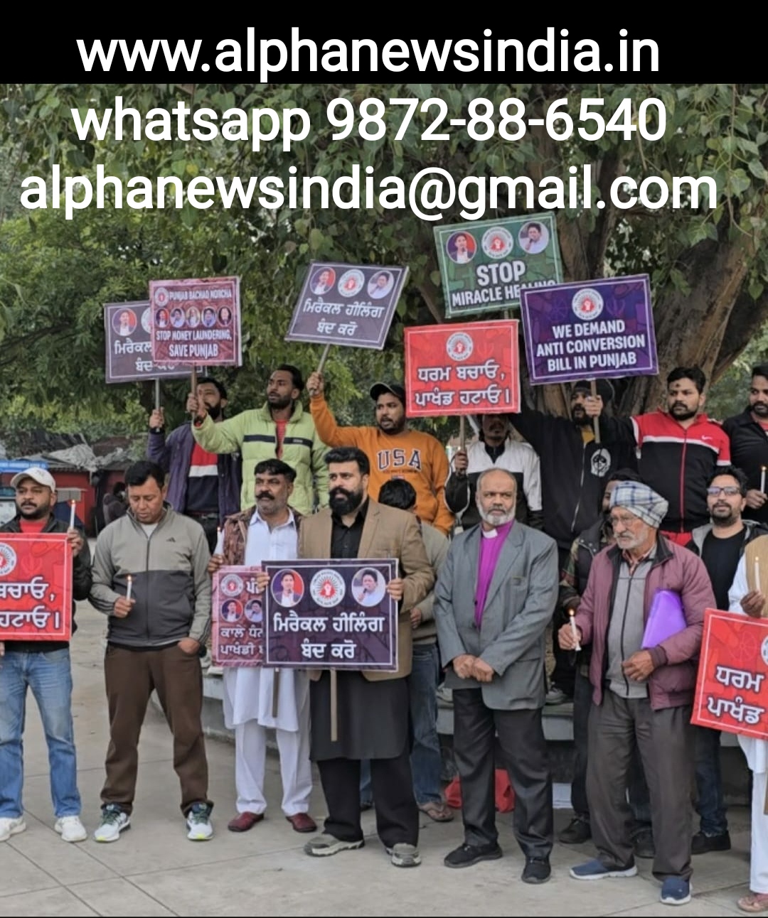 चंडीगढ़ 31 जनवरी 2026 (आरके विक्रमा शर्मा अनिल शारदा पंकज राजपूत प्रस्तुति)---आज *पंजाब बचाओ मोर्चा ने अपने अध्यक्ष तेजस्वी मिन्हास के नेतृत्व में स्थानीय सेक्टर 17 में अंधविश्वास, धोखाधड़ीपूर्ण धार्मिक गतिविधियों और पंजाब में कथित अवैध धार्मिक धर्मांतरण के खिलाफ एक विशाल जन-प्रदर्शन एवं कैंडल मार्च का आयोजन किया गया। इस विरोध प्रदर्शन का उद्देश्य उन तथाकथित “स्वयंभू बाबाओं” और “चमत्कारी पास्टरों” के विरुद्ध जन-जागरूकता फैलाना था, जिनमें *अंकुर नरूला* जैसे नाम शामिल हैं, जो व्यक्तिगत और आर्थिक लाभ के लिए झूठे चमत्कारों, भ्रामक प्रचार और डर फैलाने का आरोप झेल रहे हैं।इस प्रदर्शन में पंजाब भर से आए ईसाई नेताओं, किसान मोर्चा, छात्र संगठनों, बार एसोसिएशन एवं विभिन्न सामाजिक संगठनों के प्रतिनिधियों ने भाग लिया। वक्ताओं ने आरोप लगाया कि पंजाब में प्रलोभन, धोखाधड़ी, दबाव और गलत प्रस्तुति के माध्यम से धर्मांतरण पंथ व मतांतरण किए जा रहे हैं। जो एक संवेदनशील सीमावर्ती राज्य के सामाजिक संतुलन और जनसांख्यिकीय ढांचे के लिए गंभीर खतरा हैं।सभा को संबोधित करते हुए तेजस्वी मिन्हास ने आरोप लगाया कि *अंकुर नरूला, सोनिया नरूला, हरप्रीत देओल* सहित कुछ व्यक्ति बिना वैध एफसीआरए (FCRA) लाइसेंस के विदेशी फंडिंग प्राप्त कर रहे हैं। और इस धन का उपयोग आक्रामक प्रचार, निजी ब्रांडिंग और जनता को गुमराह करने के लिए कर रहे हैं। उन्होंने कहा कि हजारों गरीब और कमजोर लोग झूठे चमत्कारों और इलाज के वादों के कारण मानसिक, सामाजिक और आर्थिक रूप से शोषित हो रहे हैं। मिन्हास ने पंजाब सरकार पर भी गंभीर आरोप लगाते हुए कहा कि सरकार इन गतिविधियों पर कार्रवाई करने के बजाय ऐसे तत्वों को मंच, संरक्षण और राज्य स्तरीय आयोजनों में स्थान देकर परोक्ष रूप से बढ़ावा दे रही है। उन्होंने यह भी आरोप लगाया कि पंजाब पुलिस का दुरुपयोग असहमति और विरोध को दबाने के लिए किया जा रहा है। तथा इस मुद्दे को उठाने वालों पर एफआईआर दर्ज की जा रही हैं।प्रदर्शन में उपस्थित ईसाई नेताओं ने एक स्वर में कहा कि तथाकथित चमत्कारी प्रचारकों द्वारा ईसाई धर्म का दुरुपयोग और अपहरण किया जा रहा है, जो सच्चे ईसाइयों की भावनाओं को ठेस पहुंचाता है। उन्होंने स्पष्ट किया कि कैथोलिक, प्रोटेस्टेंट, ऑर्थोडॉक्स, CNI सीएनआई, मेथोडिस्ट, सेवेंथ-डे एडवेंटिस्ट और साल्वेशन आर्मी जैसे पारंपरिक ईसाई संप्रदायों ने समाज में स्कूल, कॉलेज, अस्पताल और सेवा संस्थान स्थापित कर ऐतिहासिक योगदान दिया है। जिन्हें अब अनुचित रूप से हाशिए पर धकेला जा रहा है।अंत में पंजाब बचाओ मोर्चा ने अंधविश्वास, धार्मिक धोखाधड़ी और अवैध धर्मांतरण के खिलाफ अपनी प्रतिबद्धता दोहराई और कहा कि संगठन सा
