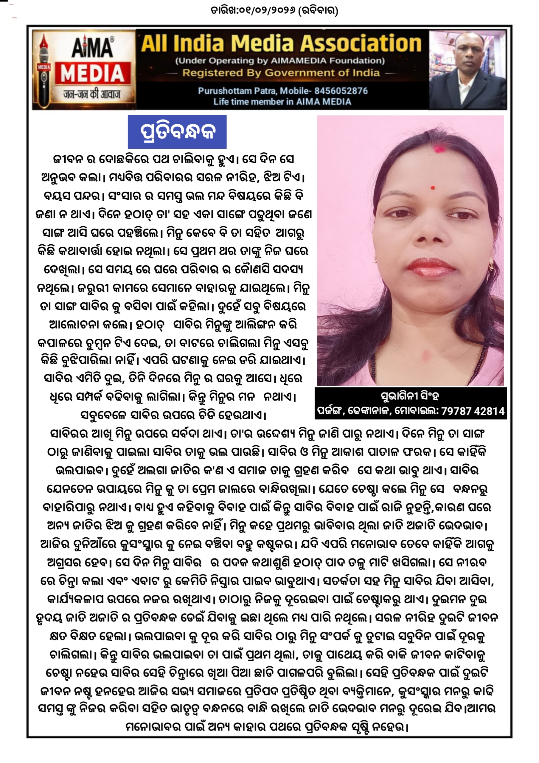 ପ୍ରତିବନ୍ଧକ - ସୁଭାଗିନୀ ସିଂହ ଙ୍କ ଦ୍ଵାରା ରଚିତ କ୍ଷୁଦ୍ର ଗଳ୍ପ।