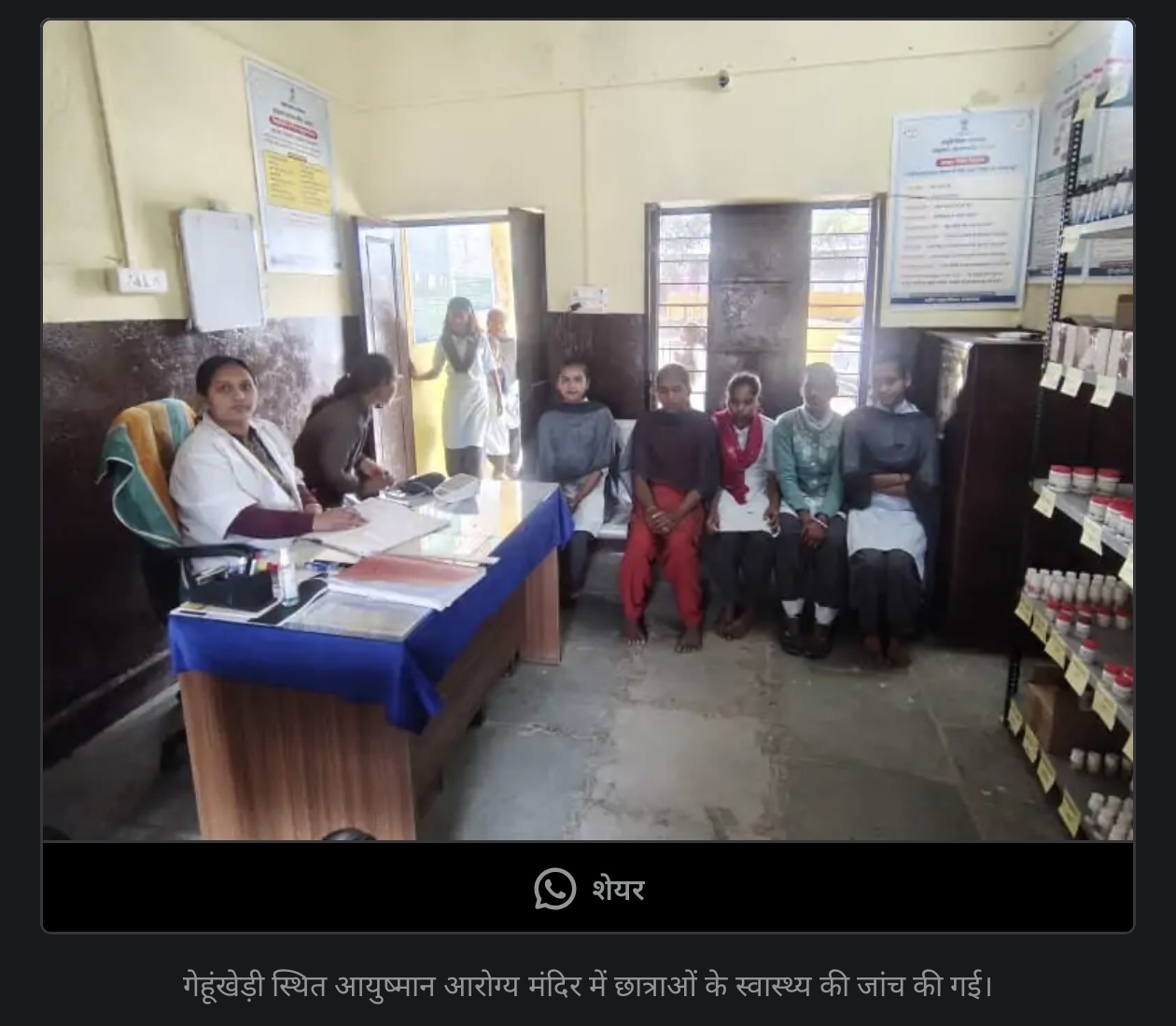 गेहूंखेड़ी में छात्राओं के स्वास्थ्य की जांच: स्वस्थ जीवनशैली और नशा मुक्ति पर जागरूकता कार्यक्रम आयोजित