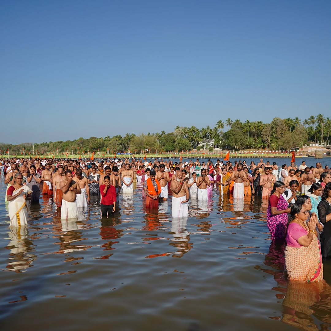 The event marks a return of traditional, spiritual practices, involving holy dips in the Nila river, Nila arati (ritual fire offerings), and, chanting of the Vedas.