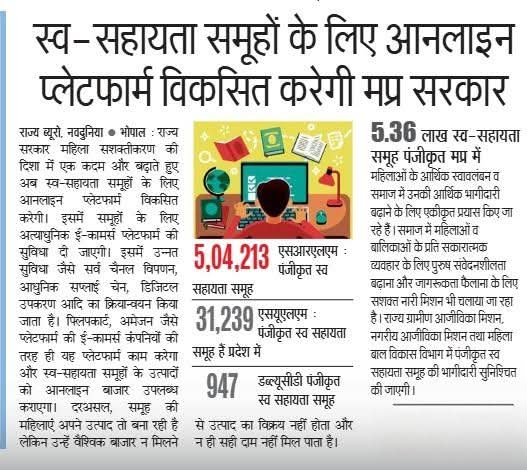 स्व-सहायता समूहों के लिए ऑनलाइन प्लेटफार्म विकसित करेगी मध्यप्रदेश सरकार