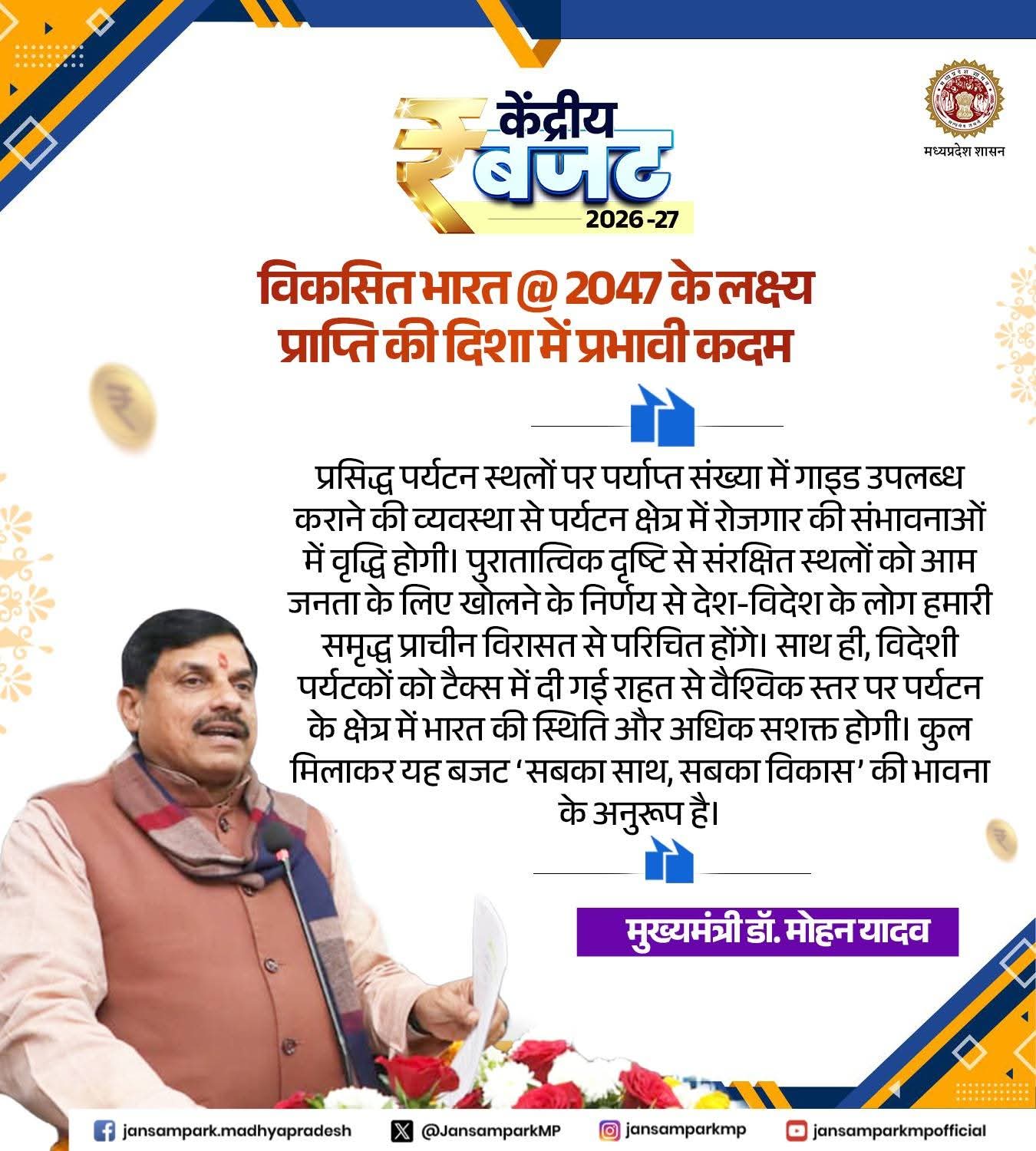 Dr Mohan Yadav CM Madhya Pradesh Department of Finance, Madhya Pradesh Department of Tourism, MP Madhya Pradesh Tourism #ViksitBharatBudget #UnionBudget2026 #Budget2026