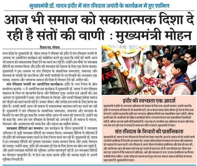 संतों की वाणी आज भी समाज को सकारात्मक दिशा देने का कर रही है कार्य: मुख्यमंत्री डॉ मोहन यादव