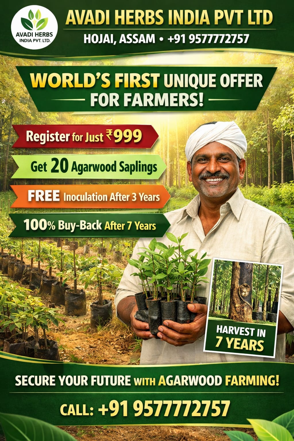 Speaking about the initiative, company representatives stated that agarwood farming not only enhances farmer income but also contributes to agroforestry development, rural employment, and sustainable land use. With rising interest from farmers across Assam and other states, agarwood cultivation is steadily gaining recognition as a future-ready agricultural model.