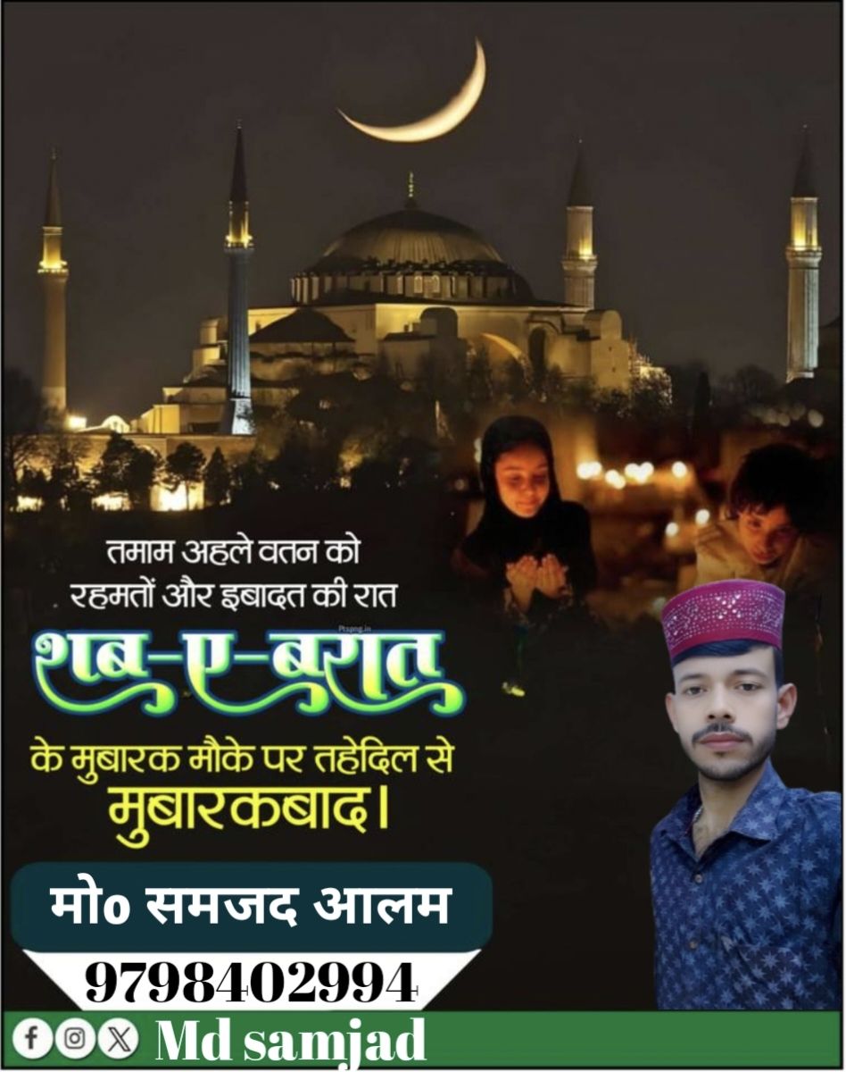 आप सभी देशवासियों को मो0 समजद आलम की और से शब-ए-बारात कि दिल से मुबारकबाद