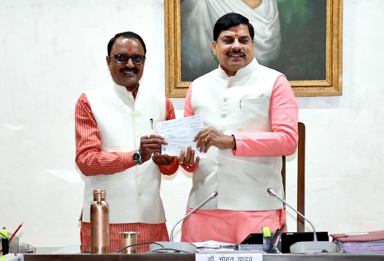 🔷ऊर्जा मंत्री श्री Rakesh Shukla ने ₹4 करोड़ 39 लाख का लाभांश चेक मुख्यमंत्री जी को भेंट किया।