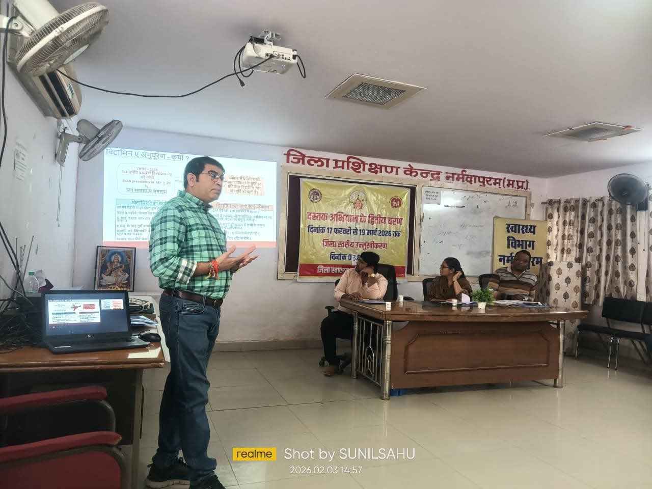 ➡️मध्यप्रदेश शासन के निर्देशानुसार जिले में बच्चों के स्वास्थ्य से जुड़ी विभिन्न सेवाएँ प्रदान करने के लिये दस्तक अभियान का दूसरा चरण 17 फरवरी से 19 मार्च 2026 तक आयोजित हो रहा है। इस अभियान में 0 से 5 वर्ष के लगभग 01 लाख 44 हजार 209 बच्चों का स्वास्थ्य परीक्षण किया जायेगा। जिसकी सम्पूर्ण तैयारी हेतु जिला प्रशिक्षण केन्द्र नर्मदापुरम में सीएमएचओ डॉ. नरसिंह गेहलोत की अध्यक्षता में जिला कार्यशाला आयोजित हुई। जिसमें डीएचओ डॉ. सृजन सेंगर, जिला टीकाकरण अधिकारी डॉ. संदीप केरकेटटा, जिला मीडिया प्रभारी सुनील साहू, डीपीएम कविता भोई, डीसीएम, सीबीएमओ, बीएमओ, बीईई, बीपीएम, बीसीएम, सुपरवाइजर महिला बाल विकास विभाग, एलएचव्ही, डाटा एन्ट्री ऑपरेटर को एम्स भोपाल से समन्वयक मनोज चौहान ने दस्तक अभियान संबंधी विस्तृत प्रशिक्षण दिया।