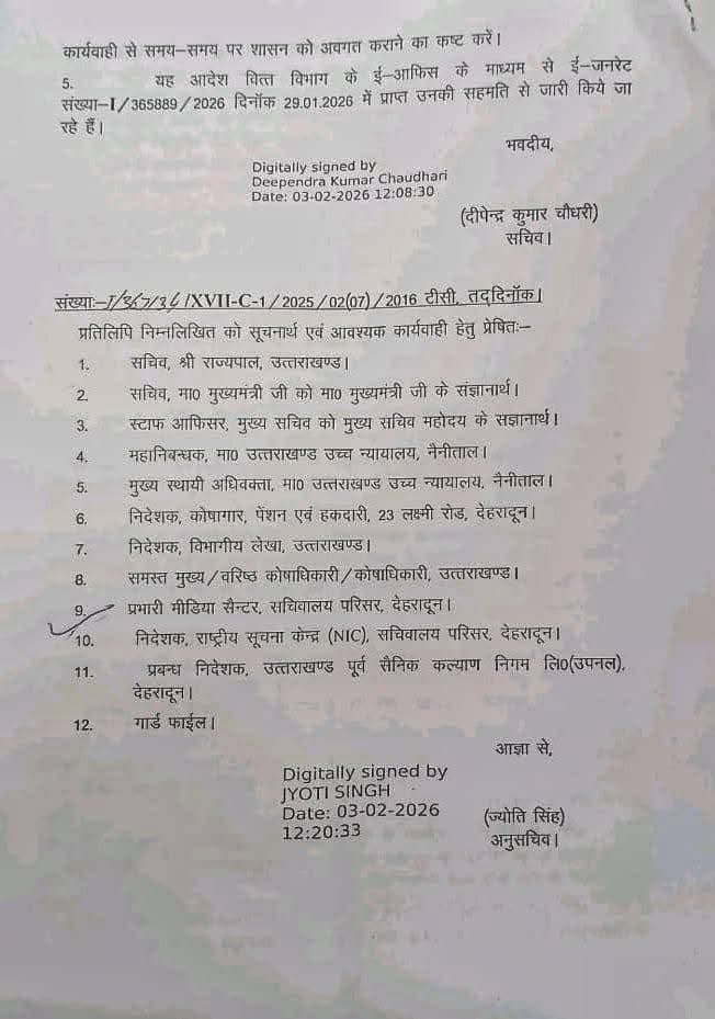उत्तराखंड सरकार ने उपनल (UPNAL) कर्मचारियों के लिए एक बड़ा निर्णय लेते हुए 'समान कार्य के लिए समान वेतन' लागू करने का शासनादेश (GO) जारी कर दिया है। शासन के इस फैसले से प्रदेश के 11 हजार से अधिक कर्मचारियों को सीधा लाभ मिलेगा।प्रमुख बिंदु:पात्रता: यह लाभ केवल उन्हीं कर्मचारियों को मिलेगा जो स्वीकृत पदों पर तैनात हैं और जिनके पास पद के अनुसार अनिवार्य शैक्षिक योग्यता है।समय सीमा: 25 नवंबर 2025 तक 10 वर्ष की निरंतर सेवा पूरी करने वाले कर्मी ही इसके पात्र होंगे। इसके लिए कट-ऑफ तिथि 12 नवंबर 2018 रखी गई है।प्रक्रिया: अगले दो महीने के भीतर सभी विभागों को सत्यापन और अनुबंध की औपचारिकताएं पूरी करने के निर्देश दिए गए हैं।नया वेतन ढांचा: श्रेणियों के आधार पर संभावित मानदेय इस प्रकार होगा:अर्द्धकुशल: ₹30,500कुशल: ₹40,000उच्च कुशल: ₹68,500अधिकारी स्तर: ₹86,000 (लगभग)महत्वपूर्ण नोट: सरकार ने स्पष्ट किया है कि भविष्य में उपनल के माध्यम से केवल भूतपूर्व सैनिकों की ही तैनाती की जाएगी, जो पूर्णतः अस्थायी होगी। राज्य सरकार इस अनुपालन रिपोर्ट को 12 फरवरी को हाईकोर्ट में पेश करेगी।"हम कार्मिक हितों के लिए प्रतिबद्ध हैं और जटिल मुद्दों के समाधान के लिए अतिरिक्त प्रयास कर रहे हैं।" — पुष्कर सिंह धामी, मुख्यमंत्री