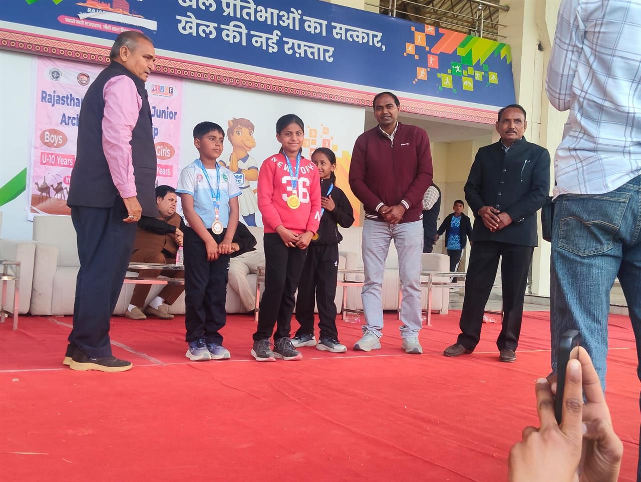 बीकानेर। जयपुर में 3-4 फ़रवरी को आयोजित मिनी सब जूनियर स्टेट तीरंदाजी प्रतियोगिता में *सार्दुल क्लब के तत्वाधान में 720 आर्चरी अकैडमी* का शानदार प्रदर्शन रहा जिसमे U-10 रिकर्व में *हिमाद्रिका पांडेय* ने स्वर्ण व U-13 कंपाउंड में *विहान खत्री* ने कांस्य पदक पर निशाना साधा, इस हेतु इनके कोच *मुकेश सुथार*, *राम स्वामी* ने बधाई दी साथ ही सार्दुल क्लब के *अध्यक्ष हनुमान सिंह राठौड़*, *सचिव एम.पी. सिंह सोईंन*,खेल कार्यकारणी सदस्य *विनय प्रताप सिंह बीका*, *राजेंद्र स्वामी* व *अजय सिंह भटनागर* ने नेशनल में अच्छा प्रदर्शन करने हेतु उज्जवल भविष्य की कामना की