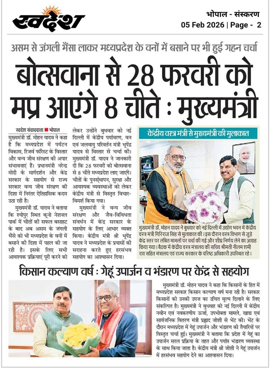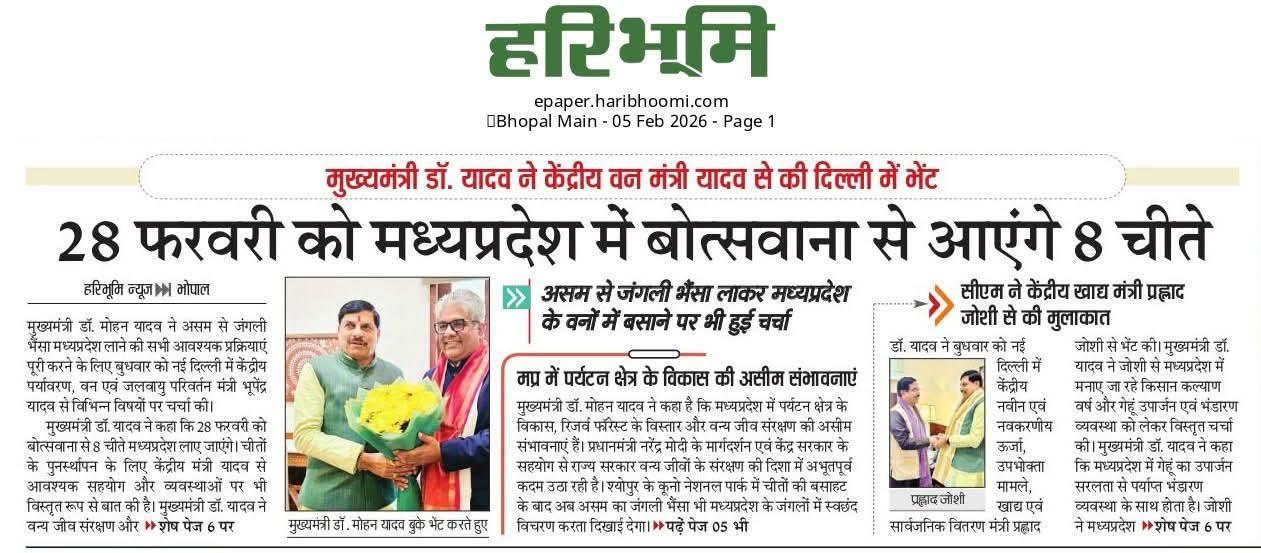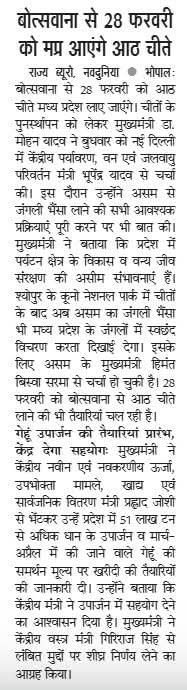 मध्यप्रदेश में 28 फरवरी को बोत्सवाना से आएंगे 8 चीते