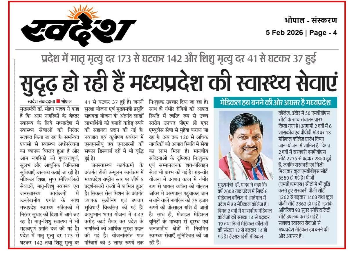 सुदृढ़ हो रही हैं मध्यप्रदेश की स्वास्थ्य सेवाएं : मुख्यमंत्री डॉ. मोहन यादव