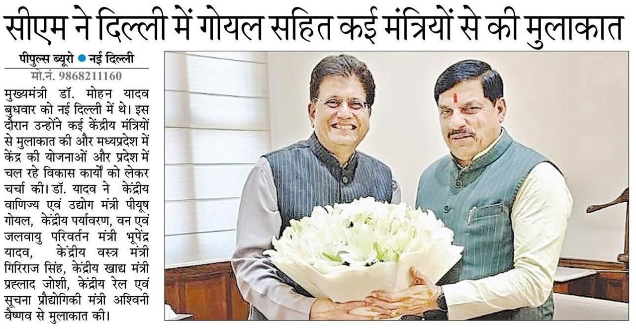 मुख्यमंत्री डॉ.मोहन यादव ने दिल्ली में कई मंत्रियों से की मुलाकात