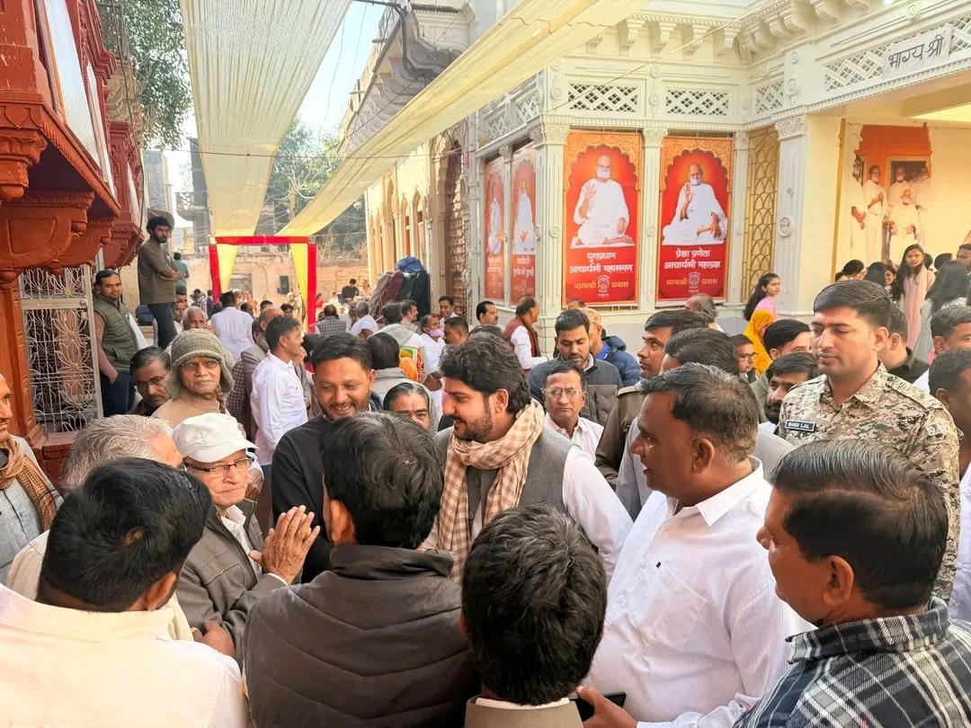 राजस्थान के नागौर ज़िले के लाडनूं नगर में जैन समाज के परम पूज्य आचार्यश्री महाश्रमण जी के सान्निध्य में एक गरिमामय एवं आध्यात्मिक क्षण देखने को मिला, जब प्रदेश के विधायक मुकेश भाकर ने उनसे शिष्टाचार भेंट कर पावन आशीर्वाद प्राप्त किया। यह मुलाक़ात अत्यंत श्रद्धा, सम्मान एवं आध्यात्मिक वातावरण के बीच सम्पन्न हुई।