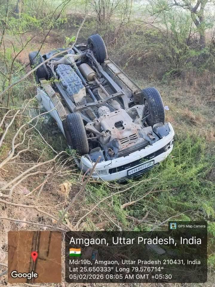 महेंद्र राजपूत मंत्री सरीला की गाड़ी अनियंत्रित होकर खाई में पलटी। सभी लोग सुरक्षित।