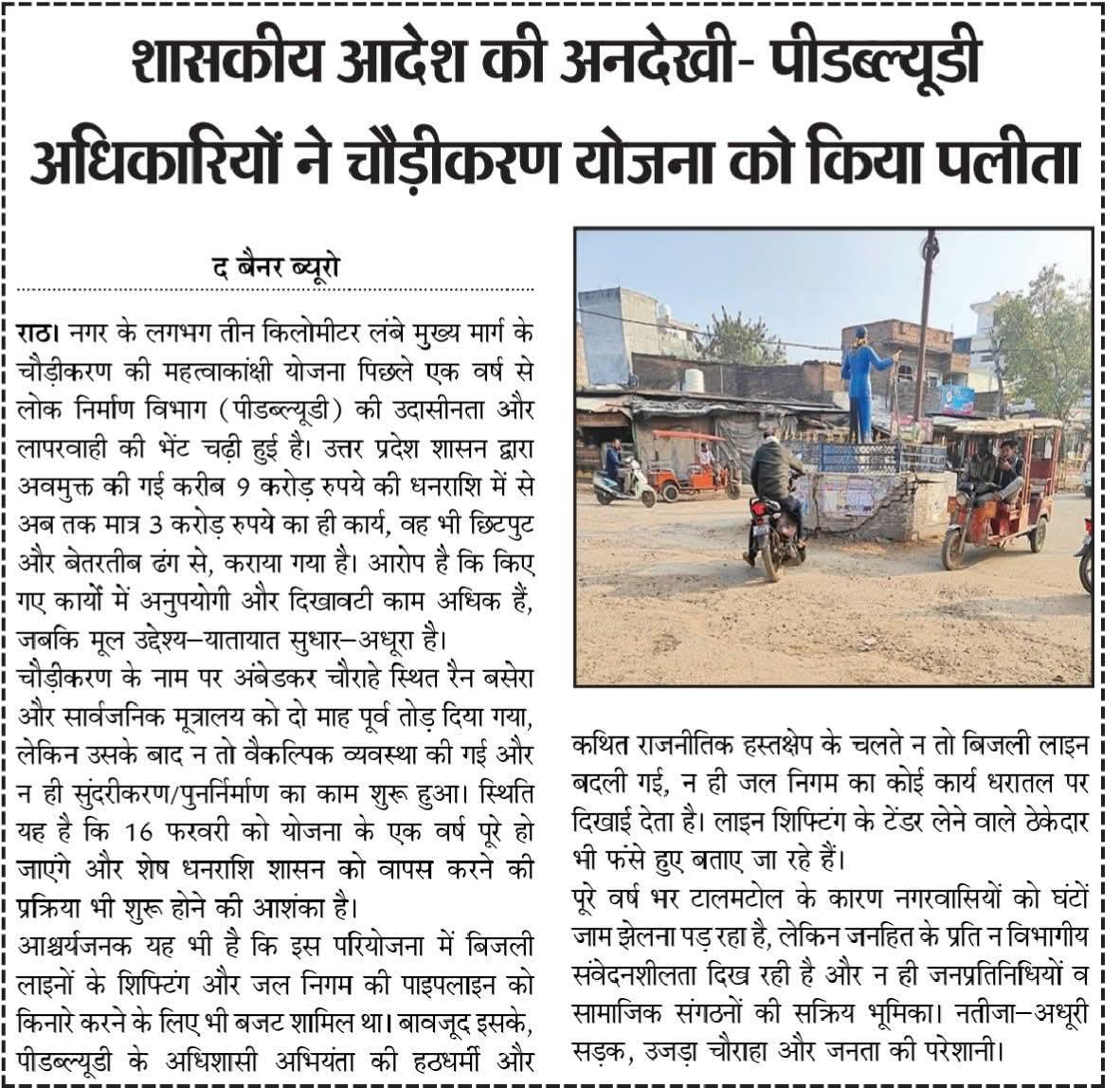 राठ नगर में सड़क चौड़ीकरण को लेकर शासकीय आदेशों की अनदेखी