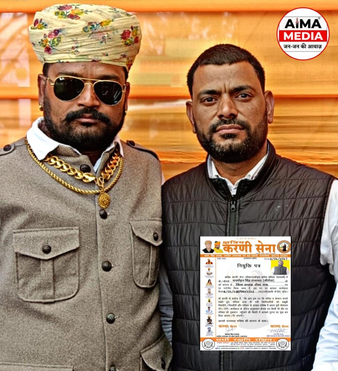 दौसा। क्षत्रिय करणी सेना के राष्ट्रीय अध्यक्ष डॉ. राज शेखावत, राष्ट्रीय उपाध्य्क्ष भंवर सिंह नरूका (भड़कोल), भँवर सिंह नाथावत महासचिव राजस्थान, के निर्देशानुसार मनमोहन सिंह राजावत (जीरोता) को जिला अध्यक्ष दौसा पद पर मनोनित किया है। मनमोहन सिंह राजावत को अहम जिम्मेदारी सौंपने के बाद संगठन ने आशा और उम्मीद जताई की आप इस पद की गरिमा और सम्मान को बनाए रखते हुए संगठन द्वारा दी गई इस नई जिम्मेदारी को बखूबी से निभाते हुए आपके निर्देश और नेतृत्व में दौसा जिले में संगठन की मजबूती में अपना पूर्ण योगदान देंगे। राजावत को जिला दौसा बनने पर उनके शुभचिंतकों ने उन्हें बधाई और शुभकामनाएं दी।
