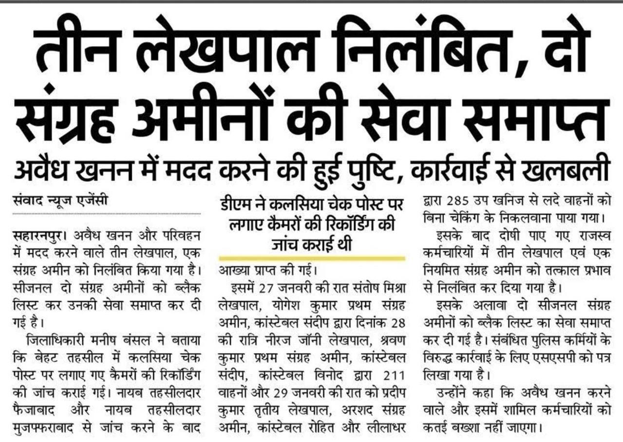 सहारनपुर डीएम मनीष बंसल ने कैमरों की रिकार्डिंग की जांच के बाद की बड़ी कार्रवाई । #UPNews #mining