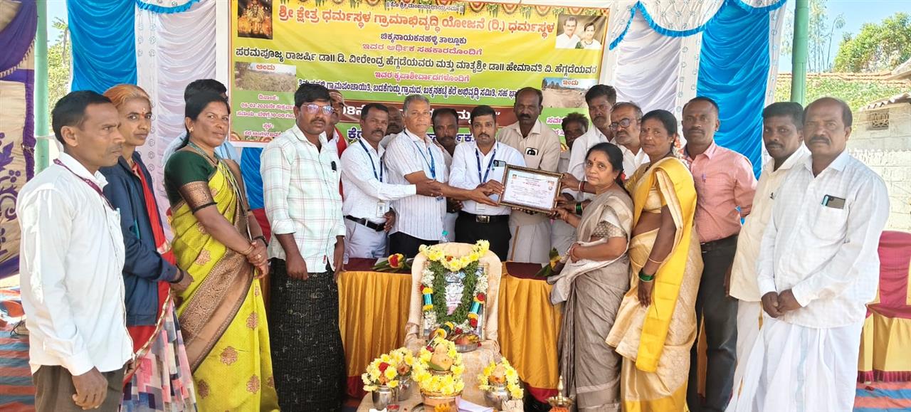 ಚಿಕ್ಕನಾಯಕನಹಳ್ಳಿ: ತಾಲ್ಲೂಕಿನ ತಿಮ್ಮನಹಳ್ಳಿ ಗ್ರಾಮ ಪಂಚಾಯಿತಿ ವ್ಯಾಪ್ತಿಯ ಬಡಕೆಗುಡ್ಲು ಗ್ರಾಮದಲ್ಲಿ ಶ್ರೀ ಕ್ಷೇತ್ರ ಧರ್ಮಸ್ಥಳ ಗ್ರಾಮಾಭಿವೃದ್ಧಿ ಯೋಜನೆ (ರಿ) ವತಿಯಿಂದ ಪುನಶ್ಚೇತನಗೊಂಡ 908ನೇ “ನಮ್ಮೂರು ನಮ್ಮ ಕೆರೆ” (ಬಕ್ಕನಕಟ್ಟೆ ಕೆರೆ) ಹಸ್ತಾಂತರ ಕಾರ್ಯಕ್ರಮವು ಇಂದು ಶುಕ್ರವಾರ ಸಂಭ್ರಮದಿಂದ ಜರುಗಿತು. ಪರಮಪೂಜ್ಯ ರಾಜರ್ಷಿ ಡಾ|| ಡಿ. ವೀರೇಂದ್ರ ಹೆಗ್ಗಡೆಯವರ ಮಾರ್ಗದರ್ಶನದಲ್ಲಿ ಈ ಕೆರೆಯ ಹೂಳೆತ್ತಲಾಗಿದ್ದು, ಇದನ್ನು ಇಂದು ಅಧಿಕೃತವಾಗಿ ಗ್ರಾಮಸ್ಥರಿಗೆ ಹಸ್ತಾಂತರಿಸಲಾಯಿತು.ಈ ಕಾರ್ಯಕ್ರಮದಲ್ಲಿ ಭಾಗವಹಿಸಿ ಕೆರೆ ಪ್ರಮಾಣ ಪತ್ರ ವನ್ನು ವಿತರಣೆ ಮಾಡಿದ ತುಮಕೂರು 2 ಜಿಲ್ಲಾ ನಿರ್ದೇಶಕರಾದ ಪ್ರವೀಣ್ ಕುಮಾರ್ ರವರು ಮಾತನಾಡಿ " ನಮ್ಮೂರು ನಮ್ಮ ಕೆರೆ ಕಾರ್ಯಕ್ರಮದಡಿಯಲ್ಲಿ ಶ್ರೀ ಕ್ಷೇತ್ರ ಧರ್ಮಸ್ಥಳ ಗ್ರಾಮಾಭಿವೃದ್ಧಿ ಯೋಜನೆಯು ರಾಜ್ಯದಾದ್ಯಂತ 1000 ಕೆರೆಗಳನ್ನು ಅಭಿವೃದ್ಧಿ ಗೊಳಿಸಿ ಗ್ರಾಮಸ್ಥರಿಗೆ ಹಸ್ತಾಂತರ ಮಾಡುವ ಕ್ರಮ ಕೈಗೊಳ್ಳಲಾಗುತ್ತಿದೆ. ಚಿಕ್ಕನಾಯಕನಹಳ್ಳಿ ತಾಲೂಕಿನಲ್ಲಿ ಈ ವರ್ಷದಲ್ಲಿ ಎರಡನೇ ಕೆರೆ ಇದಾಗಿದ್ದು ಈಗಾಗಲೇ ತಿಮ್ಮನಹಳ್ಳಿ ಯ ಕೆರೆ ಕಾಮಗಾರಿ ಮುಗಿಸಿ ಹಸ್ತಾಂತರ ಮಾಡಲಾಗಿದೆ. ಅಂತರ್ಜಲ ಹೆಚ್ಚು ಗೊಳಿಸಿ ಈ ಭಾಗದಲ್ಲಿನ ರೈತರಿಗೆ, ಜನ ಜಾನುವಾರುಗಳಿಗೆ ಅನುಕೂಲವಾಗಲು ಕೆರೆ ಹೂಳೆತ್ತುವ ಮೂಲಕ ಕೆರೆ ಅಭಿವೃದ್ಧಿ ಗೆ ಕೈಜೋಡಿಲಾಗಿದೆ. "
