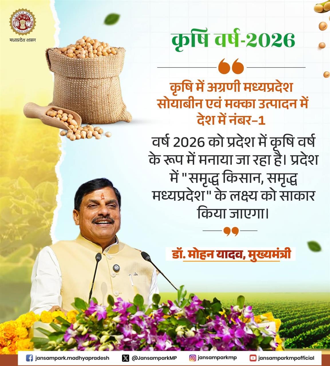 Dr Mohan Yadav CM Madhya Pradesh Ministry of Agriculture & Farmer’s Welfare, Government of India Department of Agriculture, Madhya Pradesh