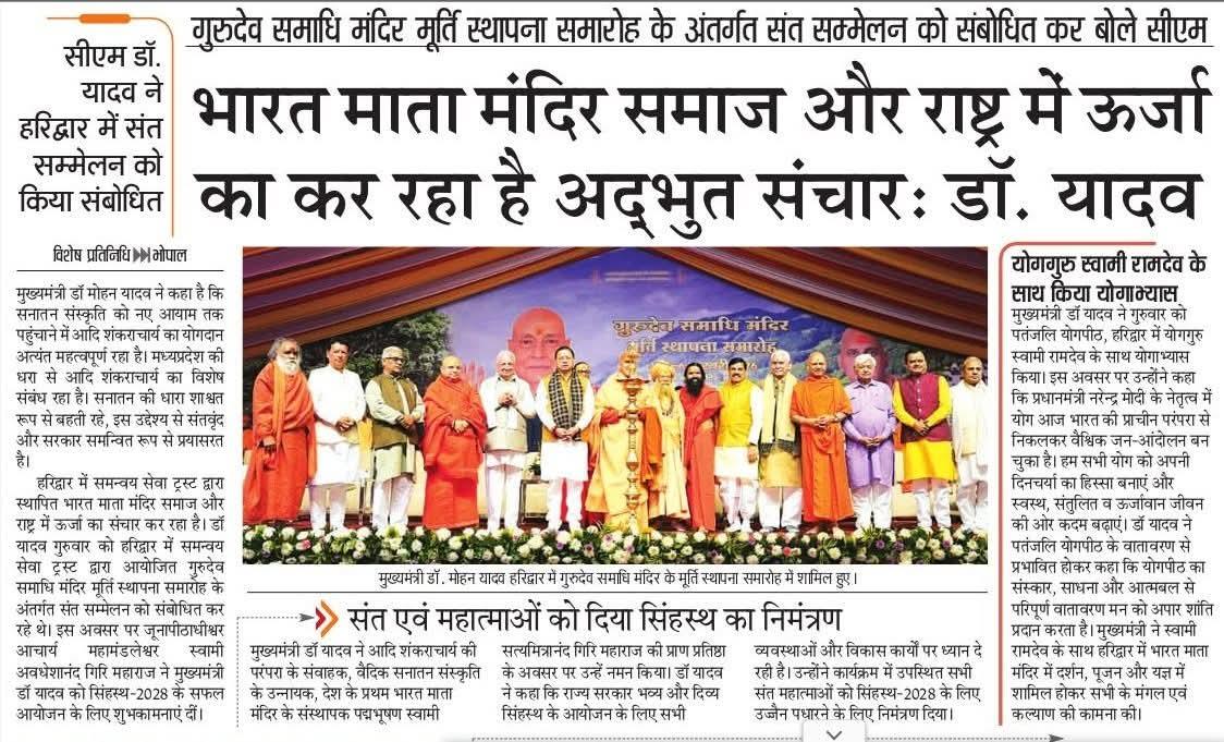 मुख्यमंत्री डॉ. मोहन यादव ने हरिद्वार में संत सम्मेलन में की सहभागिता
