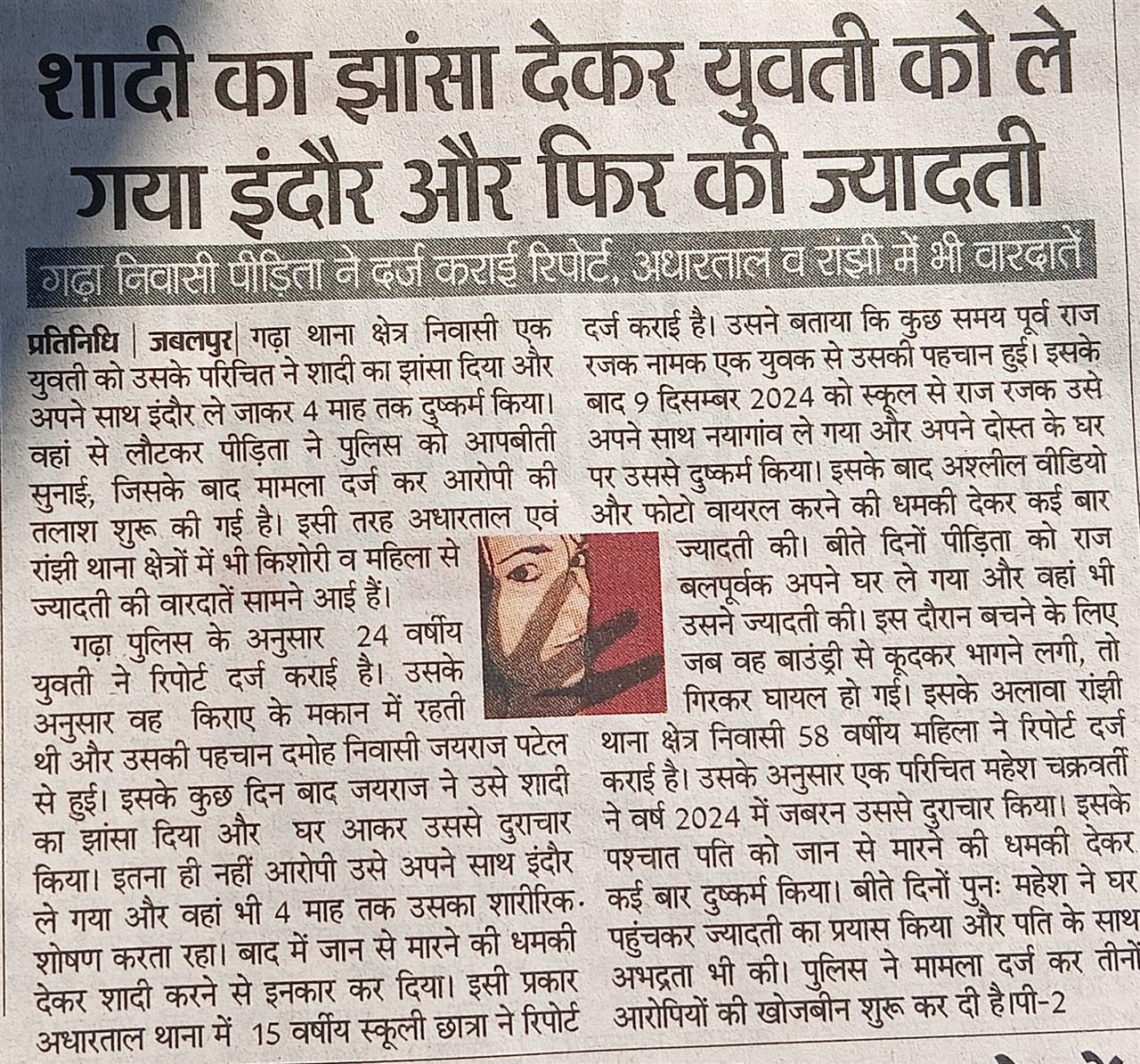 शादी का झांसा देकर युक्ति को ले गया इंदौर और फिर की ज्यादती
