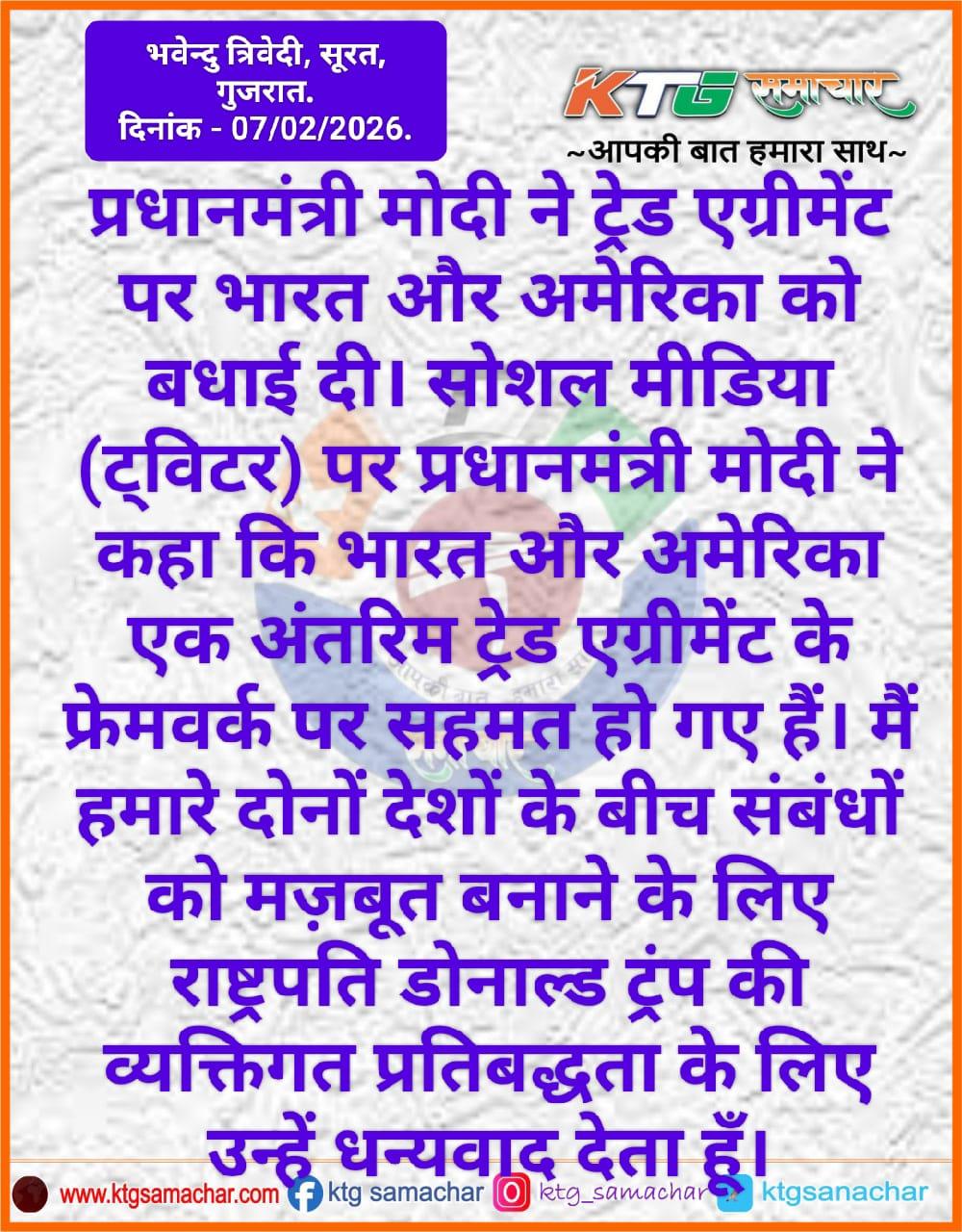 भारत और अमेरिका की ट्रेड डिल पर प्रधानमंत्री मोदी ने बधाई दी।