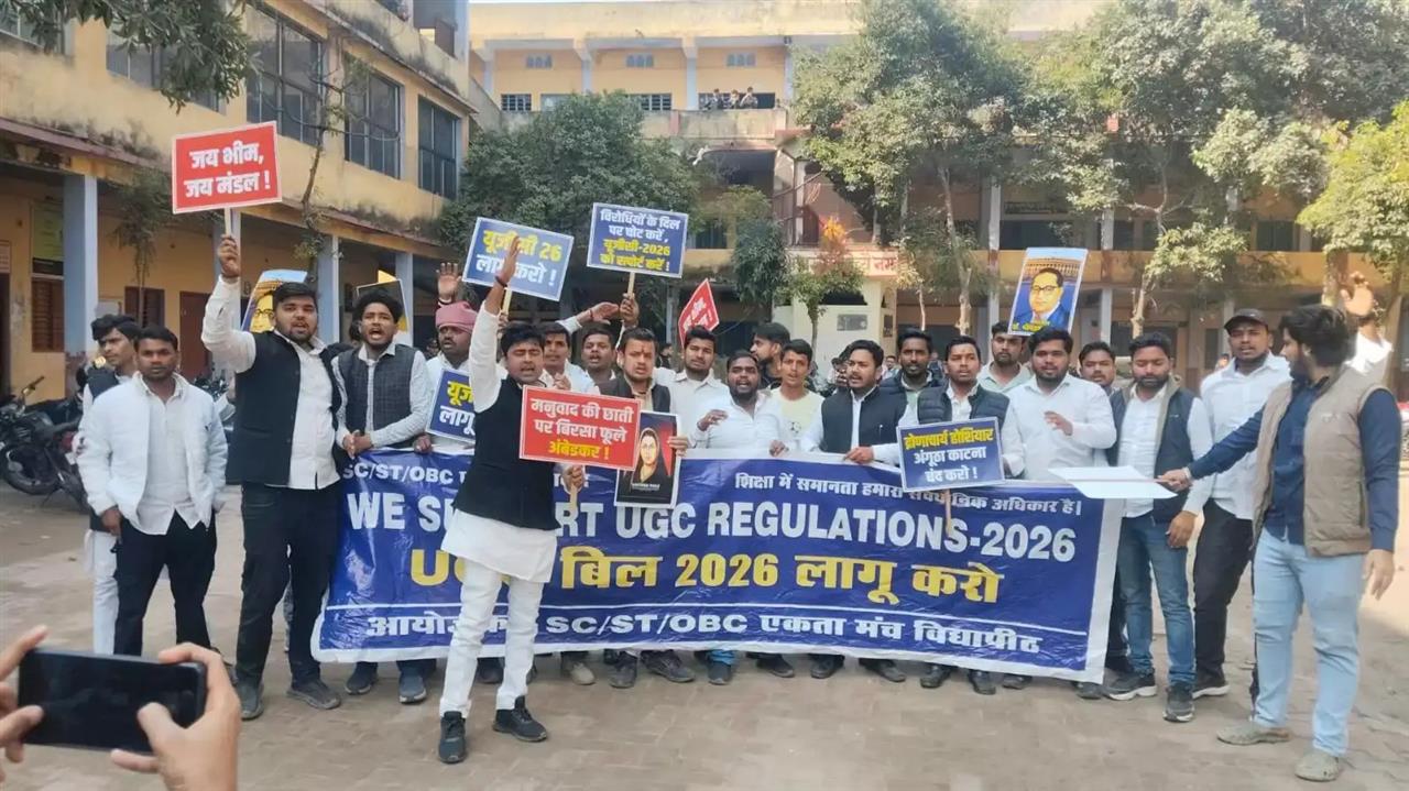 हरिश्चन्द्र कॉलेज में UGC बिल के समर्थन में छात्रों का जुलूस, प्रशासन से धक्का-मुक्की के बाद परिसर में ही धरने पर बैठे छात्र
