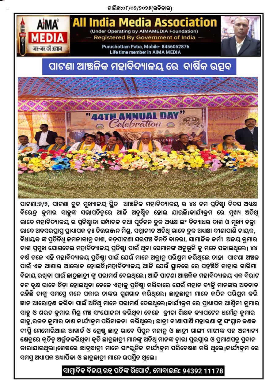 ପାଟଣା ଆଞ୍ଚଳିକ ମହାବିଦ୍ୟାଳୟ ରେ ବାର୍ଷିକ ଉତ୍ସବ।