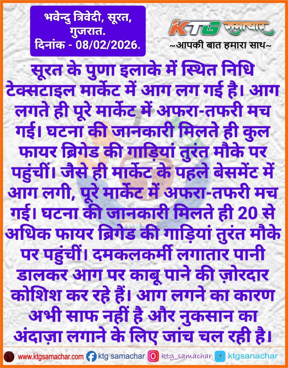 सूरत के पुणा इलाके में स्थित एक टेक्सटाइल मार्केट में आग लग गई है।