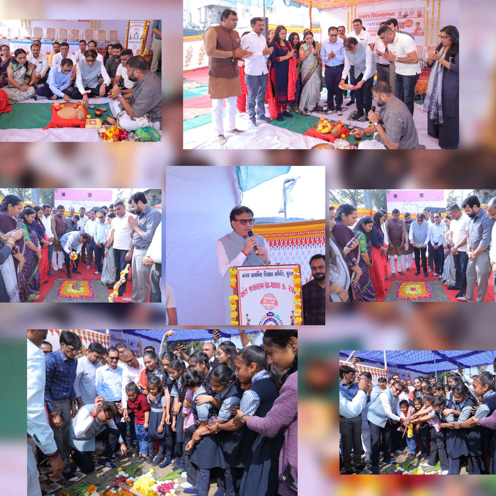 ગુજરાત સરકારના શિક્ષણ વિભાગનાં સહયોગ થી સુરત નગર પ્રાથમિક શિક્ષણ સમિતિની વરાછા ઝોન, સરથાણા ઝોનમાં અનુક્રમે કુલ ત્રણ શાળા ભવનોના નિર્માણ માટે ખાતમુહૂર્ત કરવામાં આવ્યું.