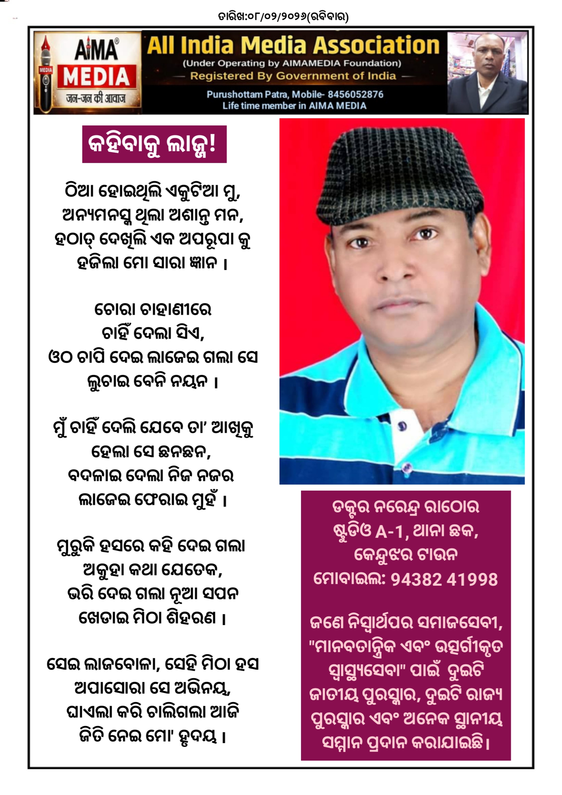 କହିବାକୁ ଲାଜ୍ଜ! - ଡକ୍ଟର ନରେନ୍ଦ୍ର ରାଠୋରଙ୍କ ଦ୍ବାରା ରଚିତ କବିତା