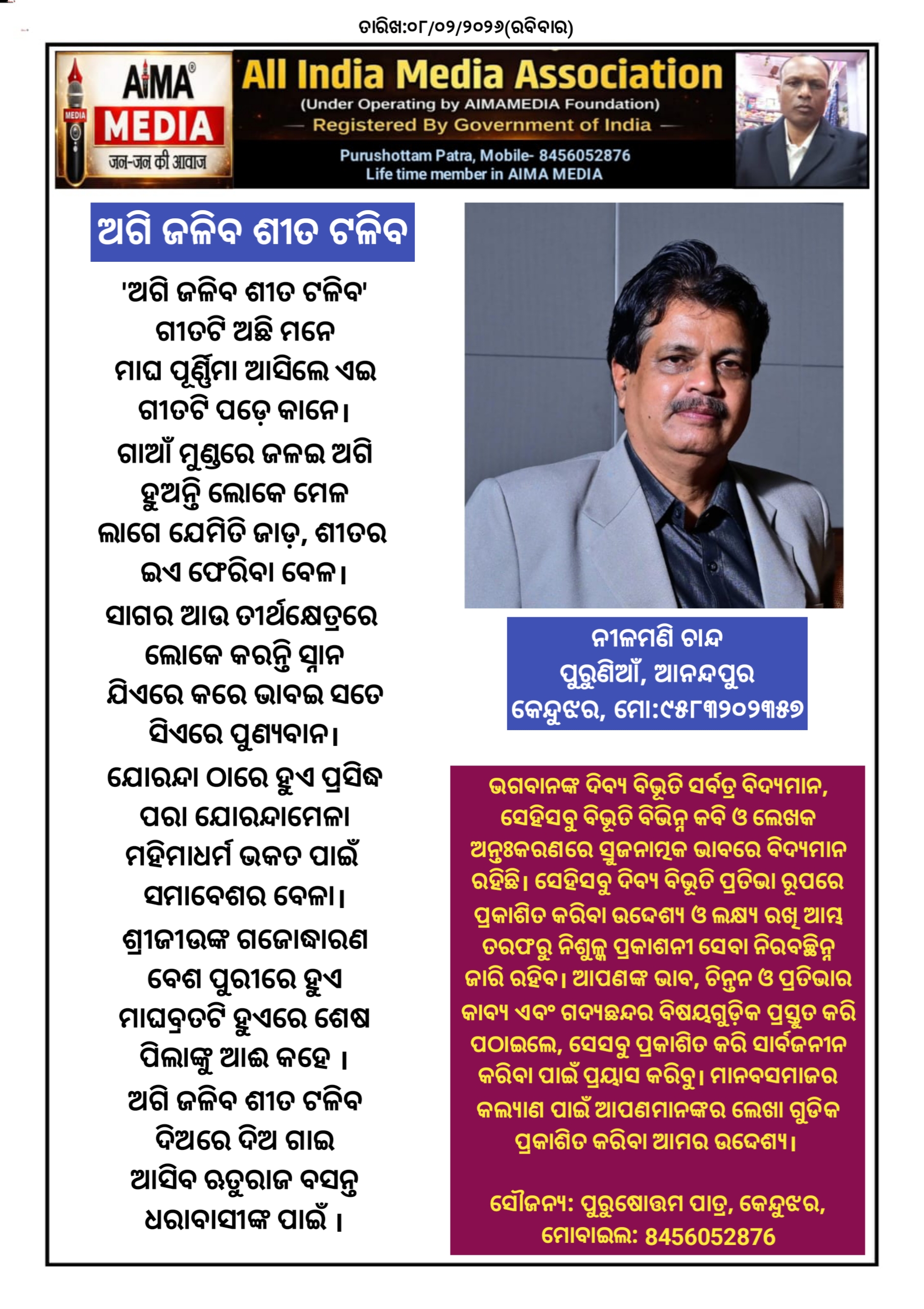 ଅଗି ଜଳିବ ଶୀତ ଟଳିବ - ନୀଳମଣି ଚାନ୍ଦ ଙ୍କ ଦ୍ଵାରା ରଚିତ କବିତା।